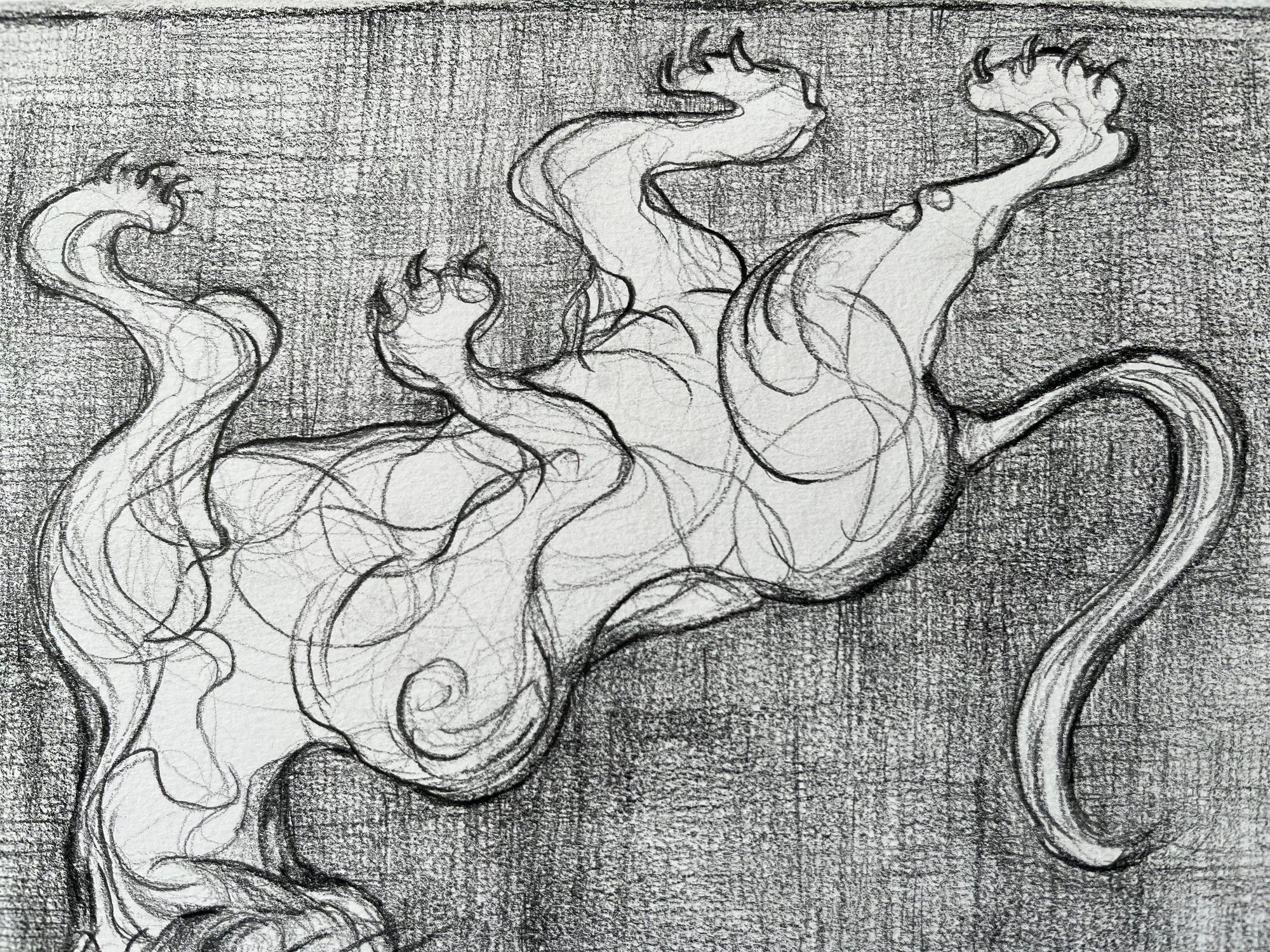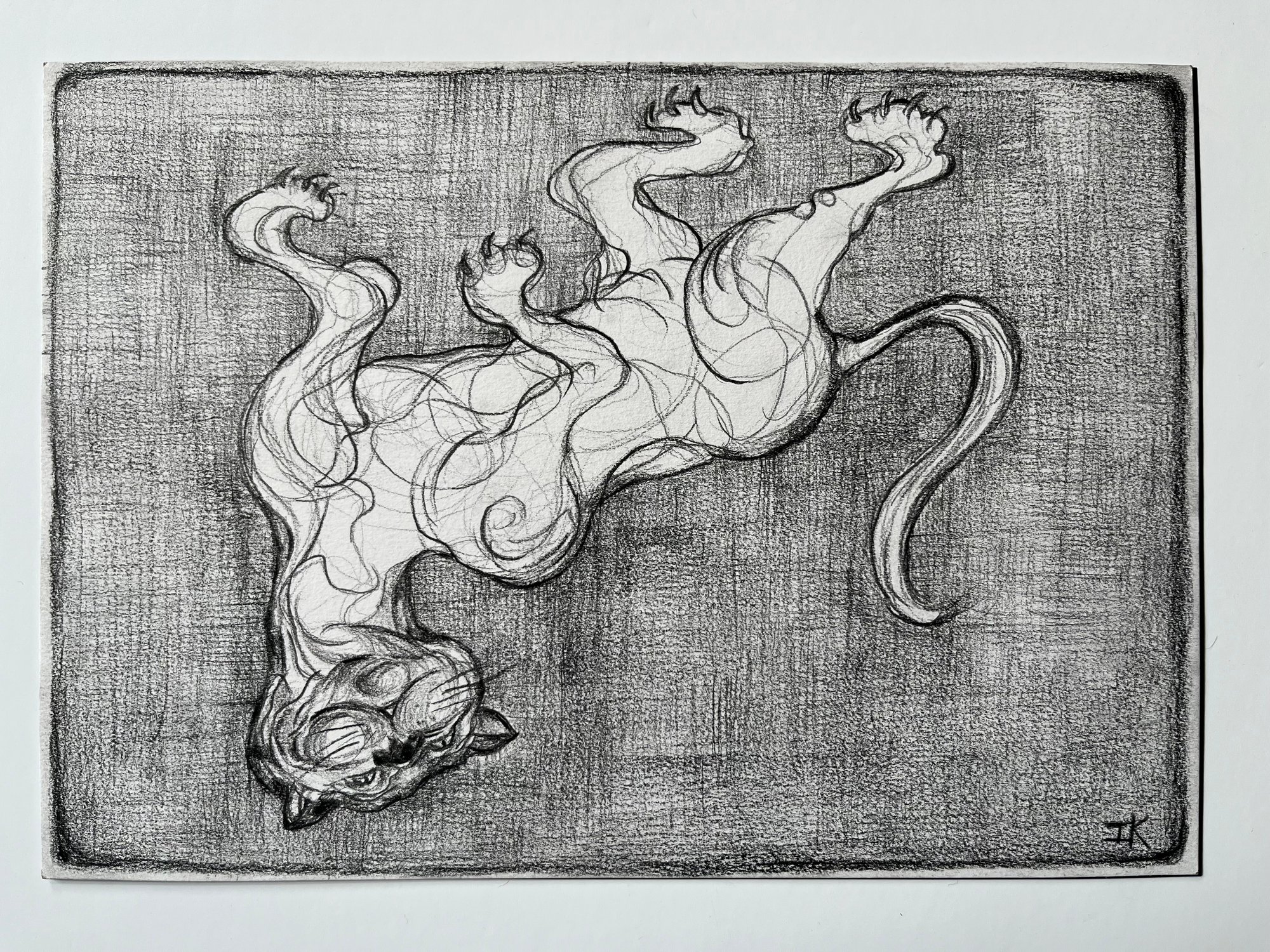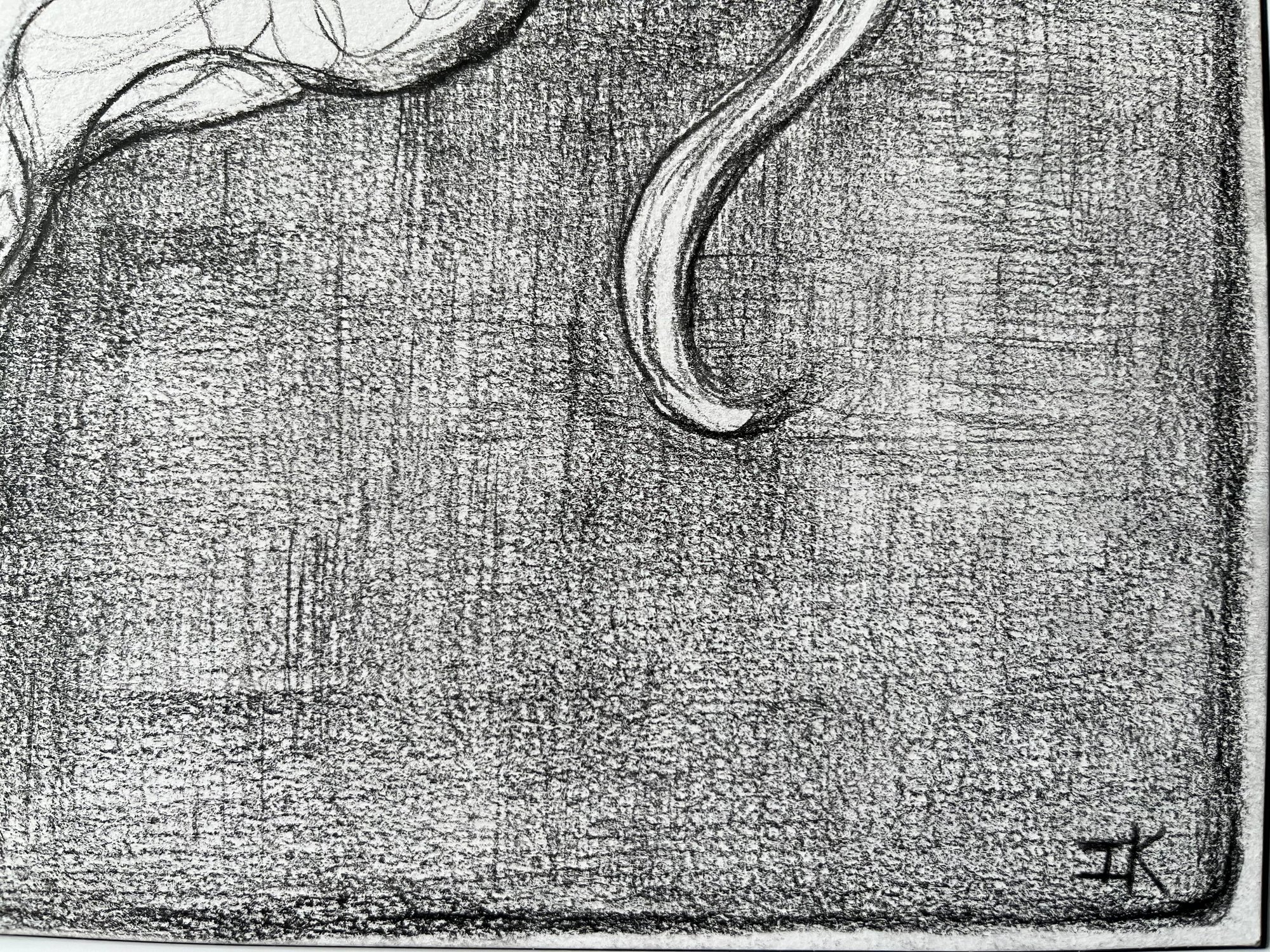 Original conte pencil drawing on paper signed by Iona Kewney.