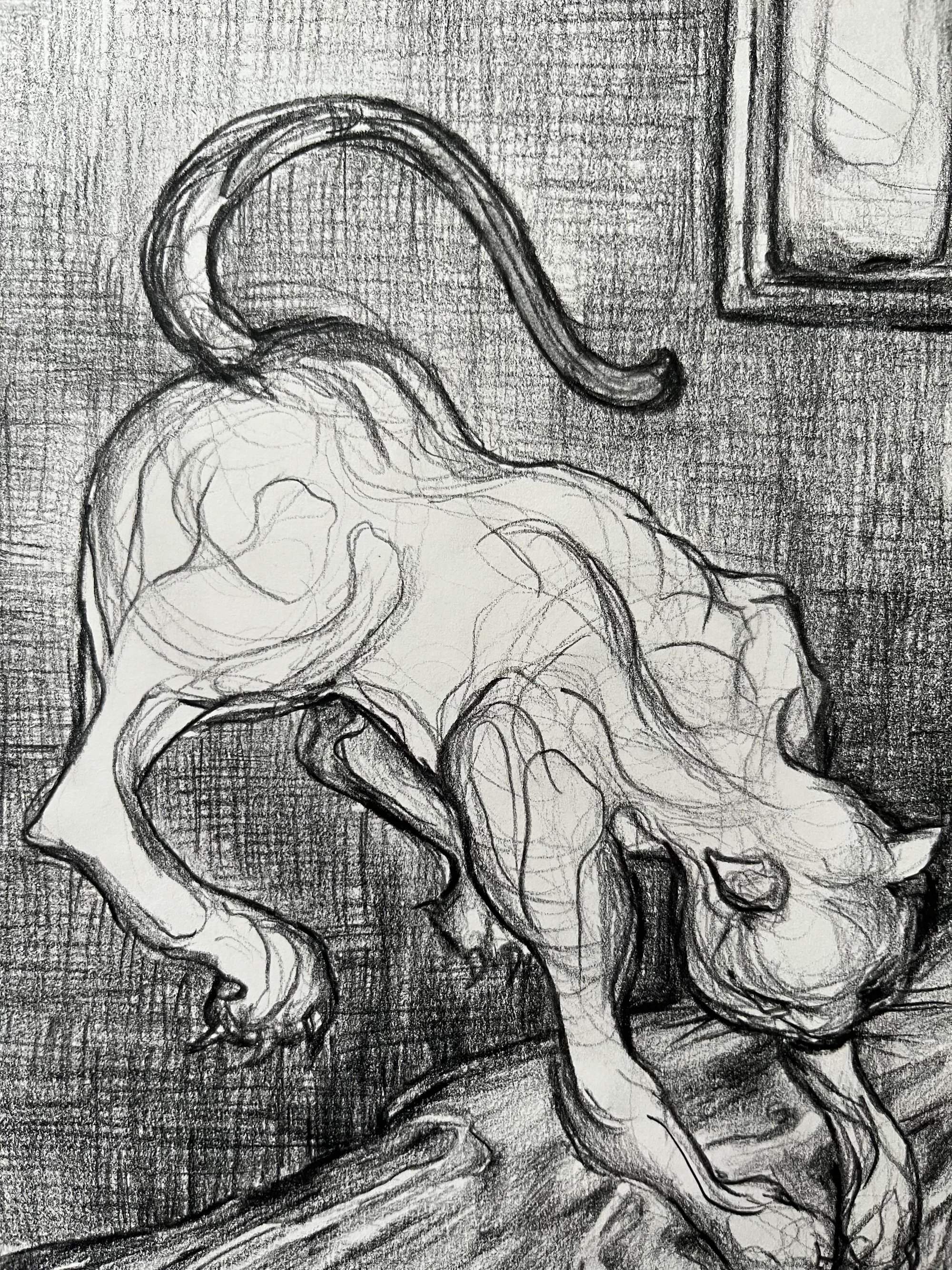 Original conte pencil drawing on paper signed by Iona Kewney.