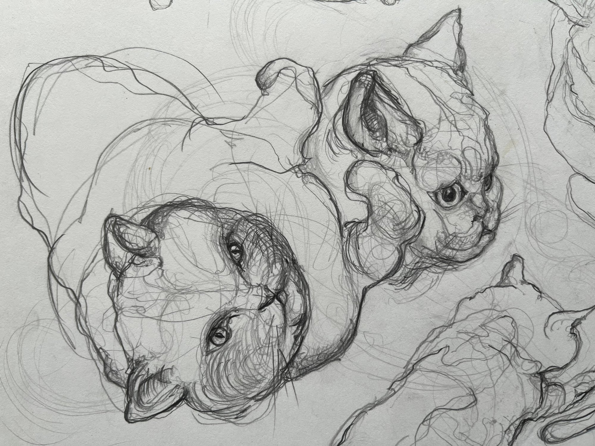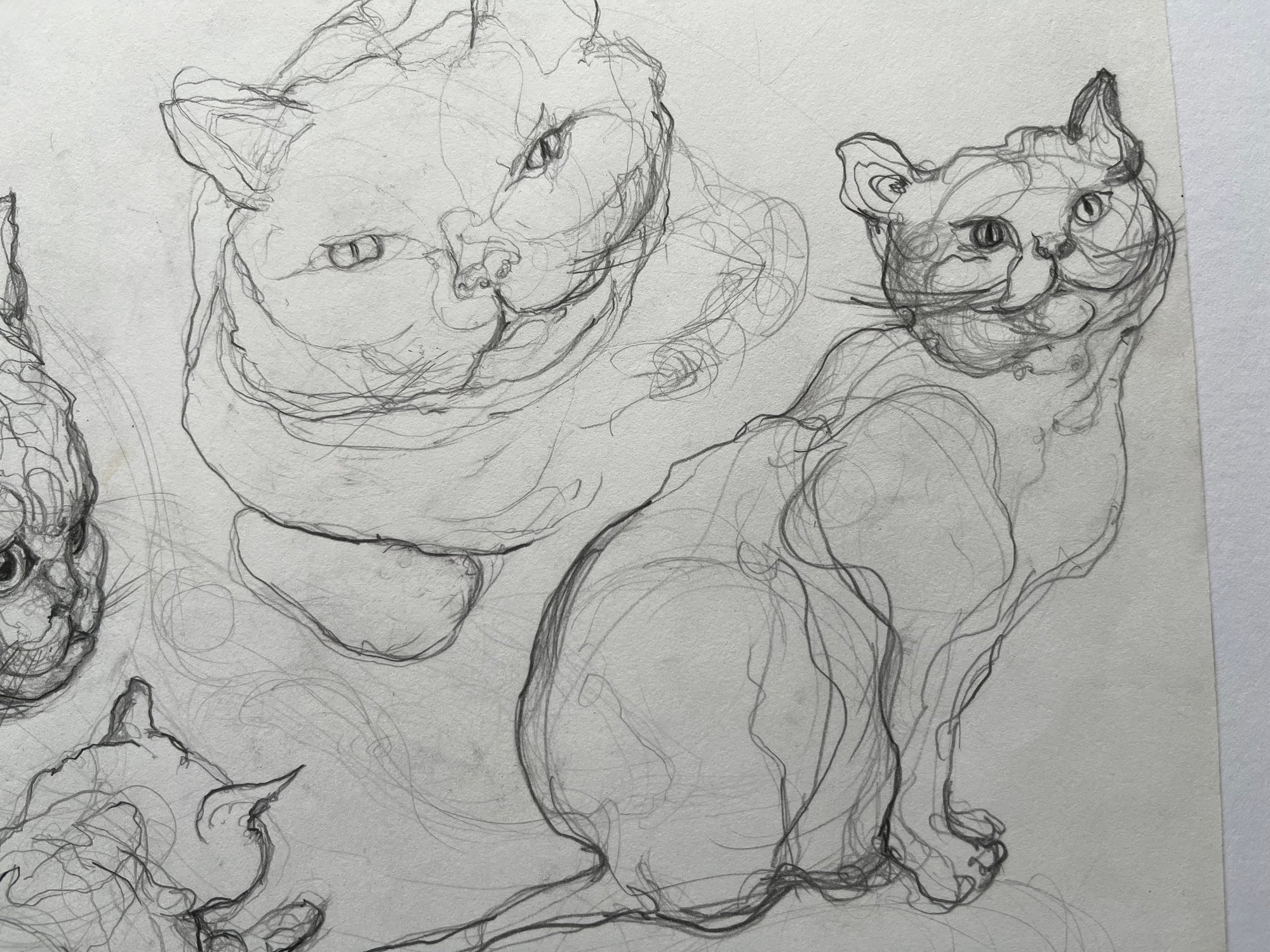 Live drawing of a cat on the move. Original pencil drawing on paper signed by the artist.
