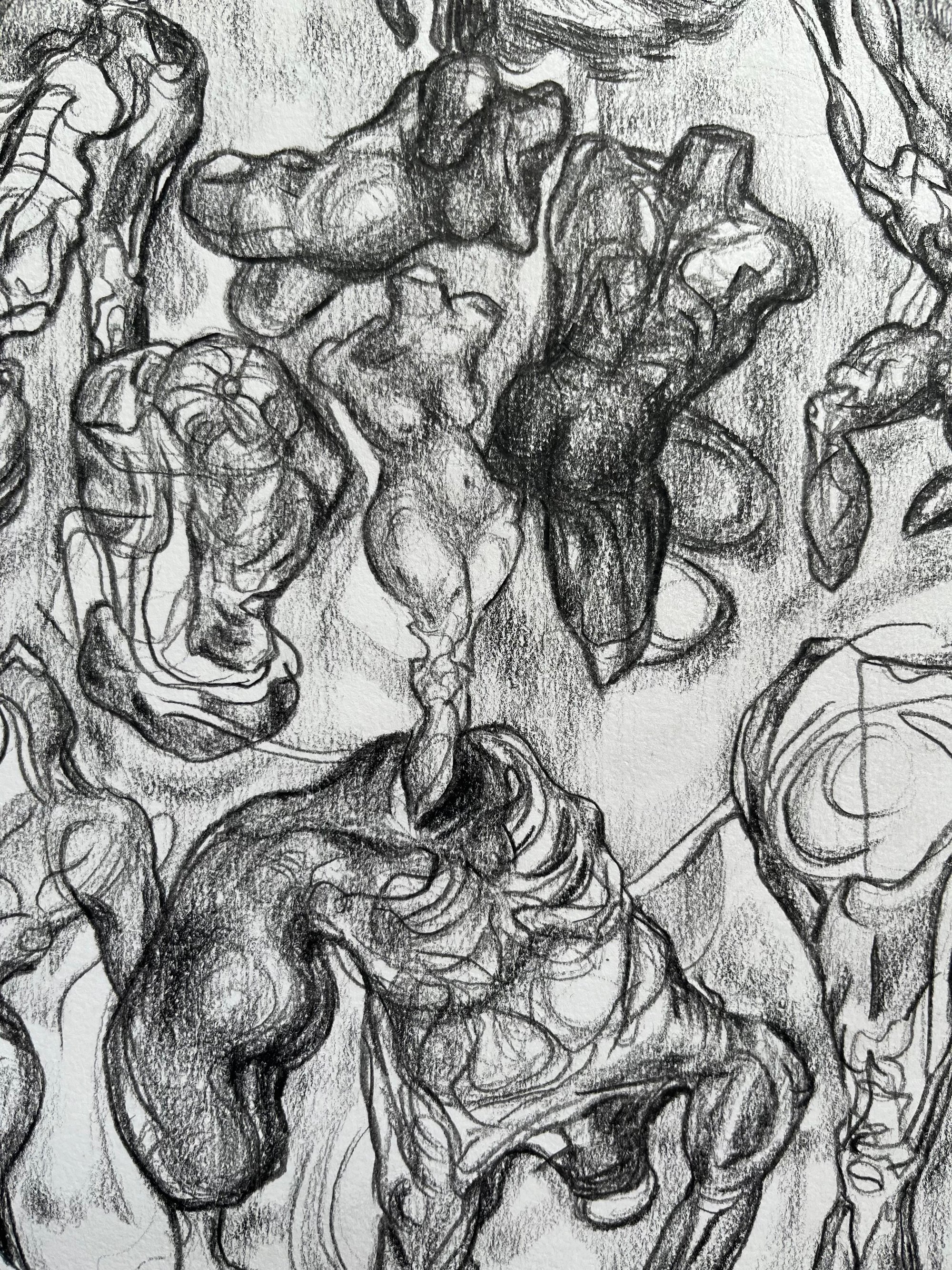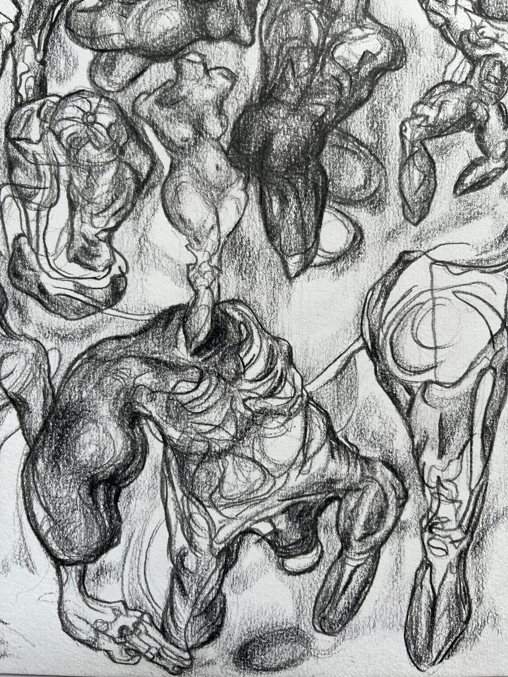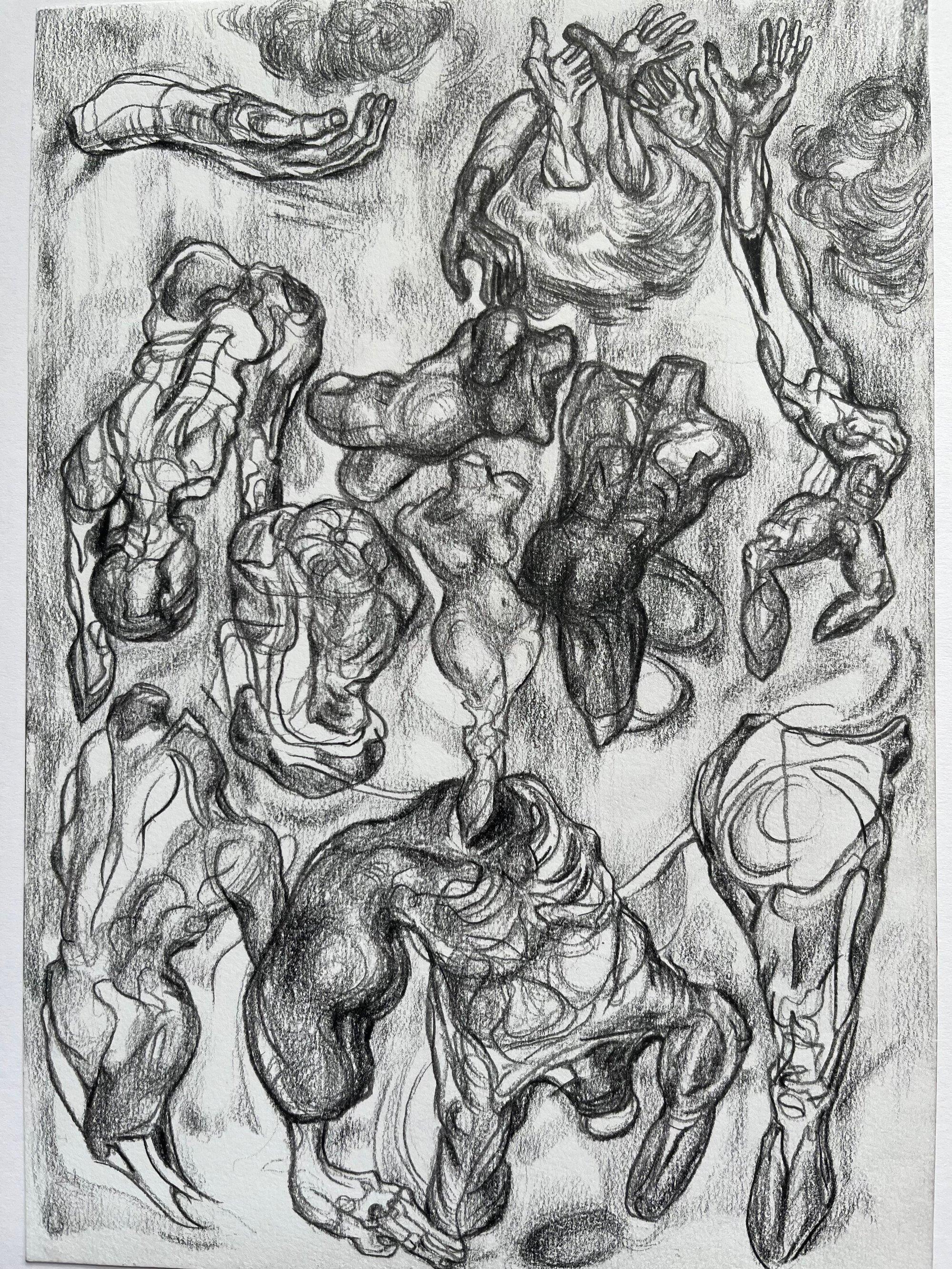 Original conte pencil drawing on paper signed by the artist. 21 x 29.5 cm . Only one.